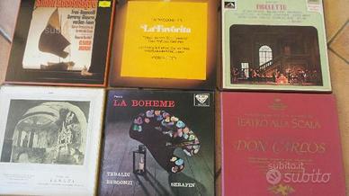 Vendo impareggiabile collezione di Long playng in vinile 33 giri di musica lirica anni 50/60/70 di famiglia composta da circa 50 opere rilegate in cofanetto come Lucia di Lammemoor , Rigoletto, Trovatore , Andrea Chenier , La favorita , La forza del destino , Otello , I masnadieri , La boheme, Ernani , Don Carlos , Simon Boccanegra e molte altre con i migliori interpreti come Bastianini , Del Monaco, Christoff , Olivero, Simionato,Corelli, Stella, Di Stefano, Scotto, Moffo, Bergonzi , Barbieri, Raimondi, Neri , Tagliabue, Tebaldi e molti altri .