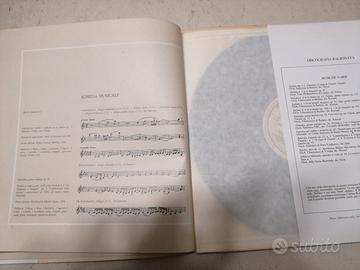 8 dischi in vinile per ogni argomento con inserti cartacei.