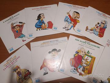 Dischi Vinile 45 giri collezione "Musica Maestra" , anno 1979. Sono 12 pezzi (più un doppione), in ottime condizioni. Tutti titoli importanti di Musica Classica. Sul retro di ciascuna copertina sono riportati stralci di spartito