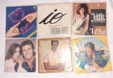 DA COLLEZIONE CEDESI Disco vinile 45 giri originali di music italiano di vario genere, visibili in foto + altri (sui Ricchi e poveri, i Cugini di campagna, Milva, Adriano Celentano, Lucio Battisti, Miguel Bosè, Eros Ramazzotti, Umberto Tozzi, Raf, Lucio Battisti, Albano e Romina Power, Trix, Loretta Goggi, Franco Franchi, Cristina D'Avena, Claudio Villa, Oliver Onions fratelli De Angelis, Rockets, Nico Fidenco, Claudio Baglioni, gli Alunni del sole, Sandra Mondaini, Gianni Togni, Claudio Simonetti, Stelvio Cipriani, Ennio Morricone, Toto Cutugno, Mietta e Amedeo Minghi, colonne sonore soundtrack ecc)