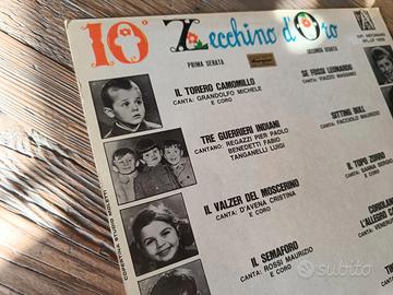 Vinile originale della decima edizione dello Zecchino D'oro cantato dal piccolo coro dell'antoniano è registrato nel 1968. Contiene alcuni dei brani più celebri di sempre come Il torero Camomillo, Quarantaquattro gatti e Il valzer del moscerino cantato da Cristina D'Avena. Cover in ottime condizioni come da foto, vinile in buone condizioni con qualche segno superficiale. Fanno fede le foto.