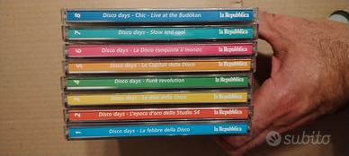 Vorresti ballare come Travolta, vestirti come i Village People e cantare come Gloria Gaynor… Tranquillo: non succederà. Ma puoi almeno ascoltare la roba giusta. 8 CD disco anni ’70/’80 Titolo? Disco Days. La fantasia proprio. Raccolta da edicola, abbastanza ignorante da farti ballare. Male. Anche senza alcool. CD in buono stato. Alcune custodie con crepe (vedi foto). Custodie vissute, come te e questa musica. Play. Due minuti e un ballo inguardabile. Ottima per: auto garage casa laboratorio per sentirti giovane (tranquillo, dura 3 canzoni) Vendo SOLO in blocco. Prezzo maltrattabile io meno, o era il contrario? Li vuoi? Scrivi! Non pensarci o guardi gli altri ballare.