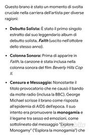 DISCO SINGOLO 45 GIRI DI GEORGE MICHAEL VINILE DA COLLEZIONE. PRIMO SINGOLO DA SOLISTA, CHE FA PARTE DELL' ALBUM " FAITH". PROVOCATORIO, NON FU MESSO IN ONDA DA MOLTE RADIO, TRA CUI LA BBC, PER I SUOI CONTENUTI. OTTIME CONDIZIONI COME NUOVO. PER UNA DESCRIZIONE PIÙ ACCURATA VEDERE LE FOTO N. 3 E 4