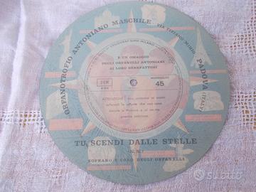 vendo raro disco microsolco 45 giri "tu scendi dalle stelle" cantato dall'antoniano di PADOVA,in plastica flessibile. posso spedire.