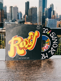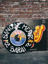 È divertente che uno dei pezzi del 45 giri si intitoli "Out of my life" che fa molto pendant con la scritta tutta intorno ( scritta dipinta a mano, ma è una coincidenza o è stato fatto apposta? 😉 ).