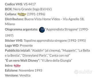 Condizioni :Ottime condizioni, custodia integra, VHS visionata pochissime volte, direttamente dagli scaffali di una collezionista, come da documentazione fotografica.