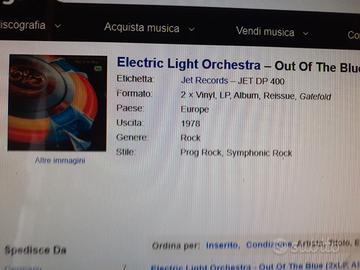 Electric Light Orchestra – Out Of The Blue Etichetta: Jet Records – JET DP 400 Formato: 2 × Vinyl, LP, Album, Reissue, Gatefold Paese: Europe Uscita: 1978 Genere: Rock Stile: Prog Rock, Symphonic Rock