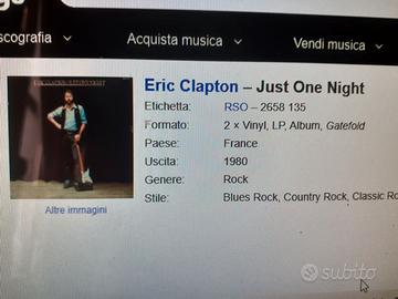 Eric Clapton – Just One Night Etichetta: RSO – 2658 135 Formato: 2 × Vinyl, LP, Album, Gatefold Paese: France Uscita: 1980 Genere: Rock Stile: Blues Rock, Country Rock, Classic Rock