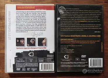 Due DVD Beppe Grillo: - anno 2005 / spettacolo a Roma - anno 2006 / Incantesimi Buone condizioni. Possibile ritiro a mano (zona Roma sud).