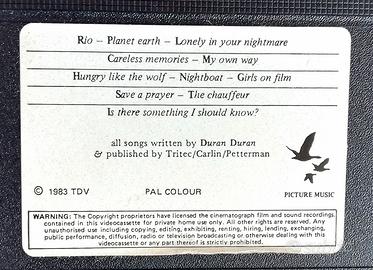 VHS in lingua originale, Duran Duran del 1983, Picture MUSIC, EMI. Durata di circa 55 minuti. Per l'elenco dei video, vedi foto. La cassetta non è stata utilizzata negli ultimi 40 anni circa, quindi è stata ben conservata e presenta pochi segni del tempo. #duranduran #newromantic #eighties #british