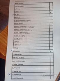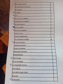 Vendesi DVD originali, usati alcuni una volta sola, altri ancora sigillati... Causa inutilizzo.. solo quelli segnati dalla X 4 euro ciascuno... altrimenti contattare via mail per avere altre 6 pagine.. tutti e 12 pagine possibilità di vendere in blocco 150 euro 68 film