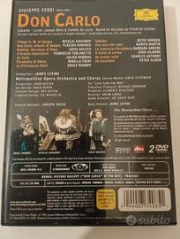 Opera Don Carlo di Giuseppe Verdi in DVD. - Con Plácido Domingo, Mirella Freni, Grace Bumbry, Louis Quilico, Nicolai Ghiaurov, Ferruccio Furlanetto. - Direttore d'orchestra: James Levine. - Orchestra e Coro del Metropolitan Opera. - Produzione: John Dexter. - Regia video: Brian Large. - Contiene 2 DVD.