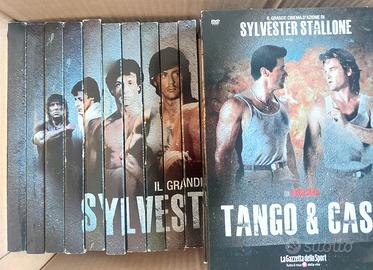 Della saga di Rocky e Rambo sono presenti 12 DVD su 25 totali in OTTIME condizioni, sempre tenuti in teca.