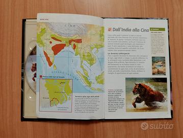 Fascicolo illustrato: pagine ricche di informazioni su habitat, ciclo della vita, tecniche di caccia e mappe della distribuzione geografica (dall'India alla Cina).