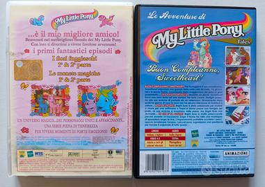 Vendo coppia di DVD originali di My Little Pony, edizioni italiane ricercate per collezionisti e nostalgici: My Little Pony (Custodia bianca): Contiene gli episodi "I fiori fuggiaschi" e "Le monete magiche". Edizione Medianetwork/Cultmania, completa di inserto interno originale. Le Avventure di My Little Pony Tales (Custodia nera): Titolo "Buon Compleanno, Sweetheart!". Edizione Avo Film (serie del 1992), ottima qualità video e sonora. Condizioni: Entrambi i DVD sono stati testati e sono perfettamente funzionanti. Custodie in buono stato come da foto. Spedizione: Disponibile tramite TuttoSubito (gestione sicura e tracciata). Nota: Non effettuo scambio a mano. Ideali per chi vuole recuperare le prime storiche serie dei "Mio Mini Pony" anni '80 e '90!