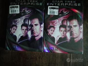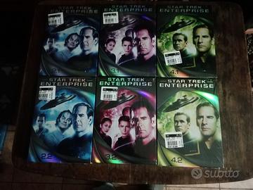 Vendo 6 cofanetti DVD della serie TV "Star Trek Enterprise", cofanetti 2.1 -2.2 - 3.1 - 3.2 - 4.1 - 4.2. Tutti e 6 NUOVI, ancora sigillati. (Ho anche i cofanetti 1.1 e 1.2 ma NON sono sigillati e i DVD presentano dei segni).