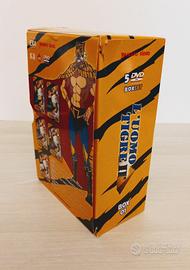 Presentazione cofanetto contenente 5 dvd uomo tigre 2. Puntate da 1 a 5. Serie avvincente per amanti del genere, combattimenti spettacolari, un tuffo nel passato.Il protagonista Tommy forgiato dalla tana delle tigri veste i panni del successore del primo uomo tigre: Naoto date! Tra vari avversari da sconfiggere ,Tommy manterrà vivo il ricordo del primo uomo tigre e le sue gesta.L obbiettivo finale? Distruggere la federazione spaziale!DVD stile anni 80 avvinmcente!
