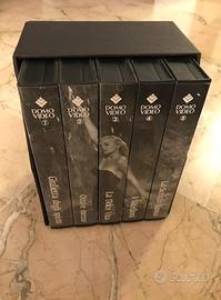 Raro box Domovideo con cinque capolavori di Federico Fellini in VHS , in una ricercata ed elegante confezione con custodia.