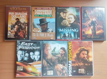 Vendo i seguenti film in DVD (prezzi indicati a fianco): Per qualche dollaro in più - € 5 Per un pugno di dollari - € 7 The Missing - € 9 The Chronicles of Riddick - € 4 Fast and Furious - € 3 Troy - € 6 L'ultimo Samurai - € 9 Il buono, il brutto, il cattivo - € 7 Wimbledon - € 5 Il texano dagli occhi di ghiaccio - € 5 World Trade Center - € 6 Flightplan - Mistero in volo - € 5 Gli spietati - € 6 In linea con l'assassino - € 3 Le crociate - € 5 Truman - Un vero amico è per sempre - € 10 Cape Fear - € 7 Fuga da Alcatraz - € 7 Hitch - Lui sì che capisce le donne - € 2 L'ultima eclissi - € 9 Cuori in Atlantide - € 6 Sono a disposizione per invio di ulteriori foto di dettaglio. Sconto in caso di acquisto multiplo.