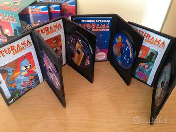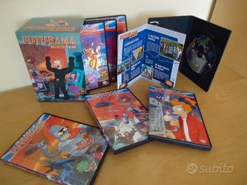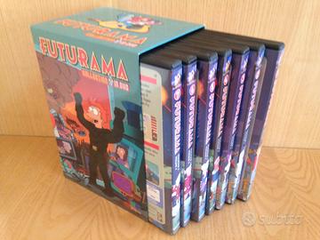 Futurama Collection in DVD! Con tutti gli episodi della prima e seconda stagione, compreso l'esclusivo cofanetto raccoglitore, da Edizioni Master. Il prodotto è stato utilizzato poco ed è sempre stato conservato e maneggiato con grande cura, come si può notare anche nelle foto. Contiene Stagione 1 - Volumi 1, 2 e 3; Stagione 2 - Volumi 1, 2, 3 e 4. In totale il box è composto di 7 DVD ognuno dei quali è corredato al suo interno da un fascicoletto a colori molto curato, che contiene le storie degli episodi, i personaggi, informazioni sull'autore e tante curiosità sulla serie di fantascienza più spassosa di sempre creata e sviluppata dal genio di Matt Groening e David X. Cohen. Ogni disco è selezionabile in lingua italiana, francese ed inglese, con relativi sottotitoli ed ogni singolo volume ha tanti contenuti extra, tra cui commenti audio agli episodi, bozzetti, cortometraggi, e scene inedite mai viste in TV.