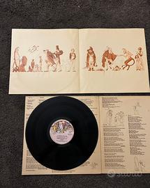 Vinile originale “A Trick of the Tail” dei Genesis, settimo album studio del 1976 su Charisma Italia (cod. 6369 953 circa), primo con Phil Collins alla voce solista post Gabriel, gatefold con artwork sepia di Baylay ispirato al racconto “Il trucco della coda del fox” e illustrazioni interne. Tracce prog iconiche come “Dance on a Volcano”, “Squonk”, “Ripples…” e “Los Endos”; copertina e disco con segni visibili di usura ma audio molto buono senza salti, perfetto per collezionisti anni ’70