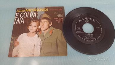 Vinile 45 giri di Gianni Morandi contenente la canzone È colpa mia, dalla colonna sonora del film Non son degno di te e Si fa sera sigla trasmissione televisiva Mare contro mare. Disco in ottime condizioni come la copertina che presenta qualche leggerissimo segno del tempo