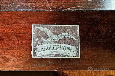 Grammofono a tromba interna periodo 1920 circa, 78 giri a carica manuale marca "Heaglephone", esemplari di grammofoni Eaglephone sono conservati in collezioni e musei, come quella del Museo nazionale della Scienza e della tecnologia Leonardo da Vinci di Milano e nel museo di Enrico Caruso.