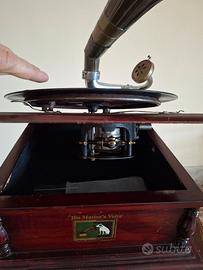 bellissimo grammofono approssimativo anno 70 copia del mitico Voce del padrone . fatto con materiali antichi . motore di grande qualità dell'epoca funzionante. se si vuole invio altre foto e video del suo funzionamento visto e piaciuto