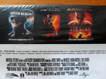 Raccolta di 3 film da culto di Vin Diesel su blu ray: - Pitch Black - xXx - The Chronicles of Riddick Nelle foto del retro sono presenti le caratteristiche tecniche audio. Il box è nuovo, mai stato usato, la pellicola esterna è ancora presente, quindi ottimo affare!