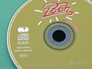 Pooh Musicadentro 23°album del gruppo l'italiano del 1994 Distribuito in una cover di latta a forma rotonda con disegni che ricordano k. Haring Cover con qualche segno , compact disc in ottime condizioni,incluso libretto con i testi delle canzoni