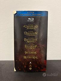 Lo Hobbit trilogy e Il Signore degli anelli trilogy extended edition con dietro le quinte e contenuti extra. Libretto illustrativo con mappa di Mordor, 6 film in 6 custodio da 5 dischi. Presenta una piccola imperfezione la custodia del 4 film, per il resto tutto in ottime condizioni. Vendo perche non utilizzo più.