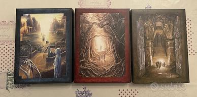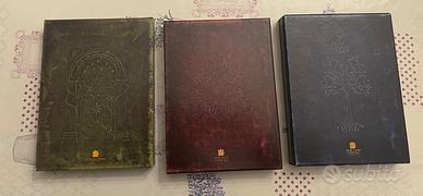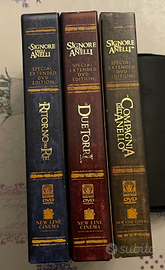 I tre cofanetti della Trilogia del Signore degli Anelli in dvd, condizioni ottime, completi di manuale. In tutti e tre i cofanetti sono ancora presenti e carte da gioco ancora sigillate.