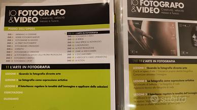 Io fotografo & video propone un corso di fotografia e videoripresa, in 20 uscite, per tutti i livelli, dal principiante all’esperto. Ogni uscita si compone di due strumenti, integrati fra loro, finalizzati a raggiungere specifici obiettivi di studio: Dvd video, Coursebook. Il Dvd video, fruibile sia sulla tv che sul proprio personal computer, si articola in lezioni che possono essere visionate integralmente o selezionando gli argomenti di maggior interesse o di cui si necessita un ripasso. Inoltre, in appendice, l’Album con le foto più belle o più interessanti che sono state utilizzate nella parte didattica. Il Coursebook cartaceo ripropone, in maniera più approfondita, gli argomenti trattati nel dvd integrandoli con esercitazioni pratiche, un piccolo glossario, foto e schemi esemplificativi. Il libretto è lo strumento per fissare i contenuti appresi nello studio del dvd.