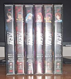 KEN IL GUERRIERO DVD 6 BOX DVD SERIE COMPLETA PRIMA EDIZIONE YAMATO ANIME DVD: Come da titolo vendo la serie completa animazione del 1983 raccolta in DVD e distribuita dalla YAMATO VIDEO nel 2012. I DVD, ormai FUORI CATALOGO, sono nuovi conservati in maniera maniacale dato che sono di un collezionista. Sono privi di graffi, neppure in controluce. I dentini di blocco del disco nelle custodie sono integri. Il cellophane di copertura è stato rimosso solo per verificare che il disco era all'interno della custodia e quindi richiusa. Questa prima edizione, è la VERSIONE INTEGRALE NON CENSURATA!