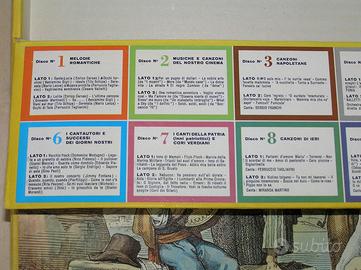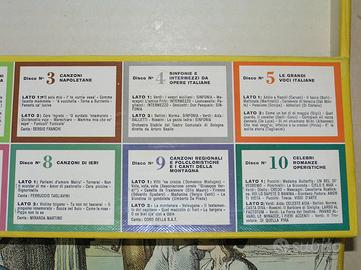 Vendo cofanetto di dischi - La bella musica italiana, 117 melodie che tutti amiamo. Selezione dal Reader's Digest. 10 dischi. Prezzo 15,00 euro A disposizione anche altri dischi soprattutto si musica clasica