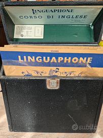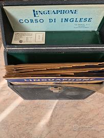 corso di inglese linguaphone, con cassetta porta dischi, 16 dischi da 78 giri con istruzioni,libri di studio, tutto ben conservato.