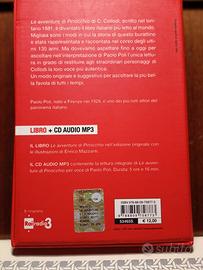 Cofanetto contenente la prima edizione anastatica delle Avventure di Pinocchio di Carlo Collodi e il CD MP3 la lettura integrale di Le avventure di Pinocchio per voce di Paolo Poli. Durata 5 ore e 16 minuti,