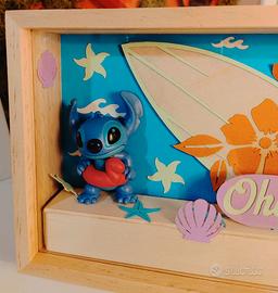 Shadowbox a tema Lilo & Stich, con action figure ufficiale al suo interno. La scatola ha un vetro frontale protettivo ed antipolvere. Oggetto da collezione o idea regalo per tutte le età, dimensioni:(17x12x4cm). Lilo & Stitch themed shadowbox, with official action figure inside. The box has a protective and dustproof front glass. Collectible or gift idea for all ages, dimensions: (17x12x4cm)