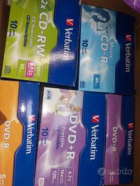 Lotti vari di verbatim e sony, DVD-R, DVD+R, DVD+RW , DVD+R PRINTABLE, DVD+R LIGHTSCRIBE, DVD+R dual layer, DVD-R e -R DL da 8 cm, CD-R 700 e 800 MB, video cassette sony VHS 120, CD-R MUSIC, audiocassetta sony HF chiedere prima modelli e quantità disponibili valuto offerte