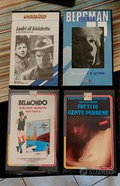 lotto di 10 vhs come fa foto abbastanza difficili da trovare come: Belmondo il piccione di piazza San Marco (nuovo) Fatti di gente perbene, Ladri di biciclette e Bergman - Sussurri e grida. Poi c'è il paziente inglese, luci dalla città con Charlie Chaplin, La pelle, Scarface lo sfreggiato, il Porta borse e radio freccia.