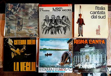 Vendo collezione di album rari di musica folk, canzoni politiche e sindacali Il vento fischia ancora (Cetra LPP 240), L'Italia cantata dal sud (Cetra LPP 168), Duo di Piadena - Vol. 2, Sotiria Bellou (scritta in greco), Hommage à Atahualpa Yupanqui (LD 5732), Amore tu lo sai la vita è amara (Cetra LPP 184), Alison Kinnaird - The Harp Key (Temple Records), Barbara chante Barbara (Philips), Donatina e Ettore De Carolis, Mikis Theodorakis (Cetra), Haris Alexiou - 24 Tragoudia (scritta in greco), Liesbeth List interpreta Theodorakis (Philips), Samira Toufic (LPD 107), I Dischi del Sole (Matteo Salvatore / Caterina Bueno), Canzoni Popolari Italiane (OBL 8121), Chants des émigrants italiens (Le Chant du Monde). Vinili in ottime condizioni, 3 copertine consumate.