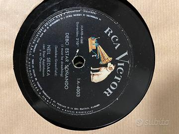 Lotto di 30 dischi in bachelite per grammofono, etichette RCA VÍCTOR, HIS MASTERS’S VOICE, COLUMBIA e altre. Tra gli autori: Neil Sedaka, Paul Anka. In omaggio due album in ottimo stato.