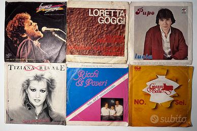 Vendo in blocco 6 dischi in vinile 45 giri originali italiani, edizioni vintage anni ‘70/‘80. Ideali per collezionisti, amanti della musica italiana o per chi cerca pezzi retrò per arredamento.