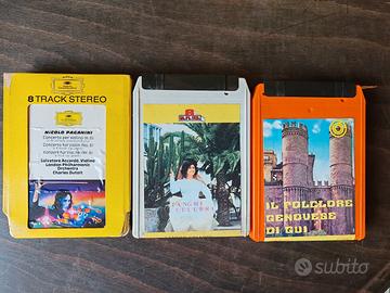 Vendo lotto di n. 7 cassette stereo 8: - Peter Convent's stereo special - Flamenco - Sergio Endrigo l'arca di Noé -Nicolo Paganini -Tanghi celebri - il folclore genovese di gui - Carly Simon Hotcakes (ancora sigillata) Le cassette sono in ottimo stato di conservazione. Testate e funzionanti. Possibilità di spedizione.