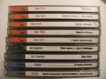 Lotto di nove CD musicali della collana Jazz & dintorni editi nel 1997 da Fabbri Editore con i seguenti titoli: Bill Evans (New York n.23); Clifford Brown & Max Roach (New York n.25); Herbie Hancock (New York n.11); Charles Mingus (New York n.28); I nuovi sassofonisti (New York n.55); Chet Baker & Gerry Mulligan (Los Angeles n.5); Stan Getz (Los Angeles n.33); Il nuovo Brasile (Bahia n.41); Michel Petrucciani, Richard Galliano & Michel Portal (Parigi n.57).