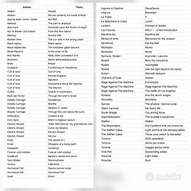vendo cd usati in lotto, generi vari: black metal, death metal, noise, post metal, stoner, alternative rock, ecc... LISTA COMPLETA IN FOTO A disposizione per ulteriori dettagli