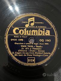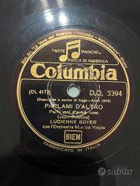 Vendo prezioso lotto di 5 dischi originali a 78 giri in gommalacca (shellac), testimonianza storica della musica italiana e internazionale tra gli anni '40 e '50. I dischi appartengono a etichette storiche come Cetra, Columbia, Odeon e Disco "Grammofono".