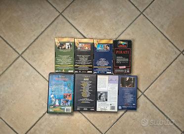 Lotto di 8 videocassette VHS originali, alcune ancora sigillate. Include titoli come La Casa degli Spiriti, Con Air, Pocahontas, Shine, Pirates, Cabaret, La Carne e il Diavolo e La Voce del Violino. - Condizioni miste, alcune sigillate. - Titoli vari per diversi generi.