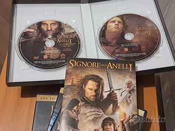 Trilogia completa de Il Signore degli Anelli in formato DVD in edizione 2 dischi e trilogia Lo Hobbit sempre in edizione 2 dischi.