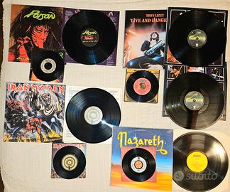 Lotto di 1l7 vinilili metal hard rock (13 LP 33 giri + 4 vinili 45 giri).